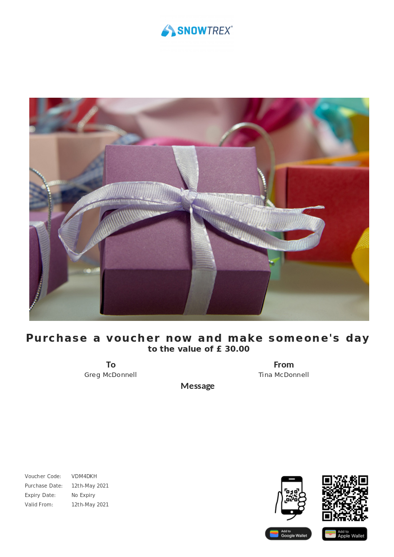UK - SnowTrex - Gift voucher allows you to purchase instantly printable gift vouchers, special offers and tickets using the Voucher Connect platform.